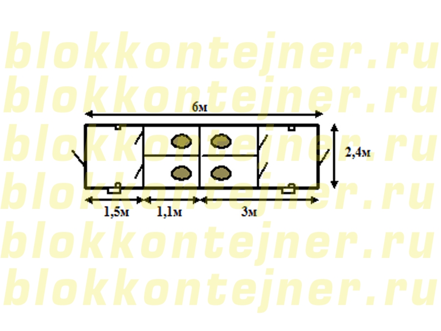 Блок - контейнер  БК 6,0*2,4*2,5 -1шт. Санузел М/Ж